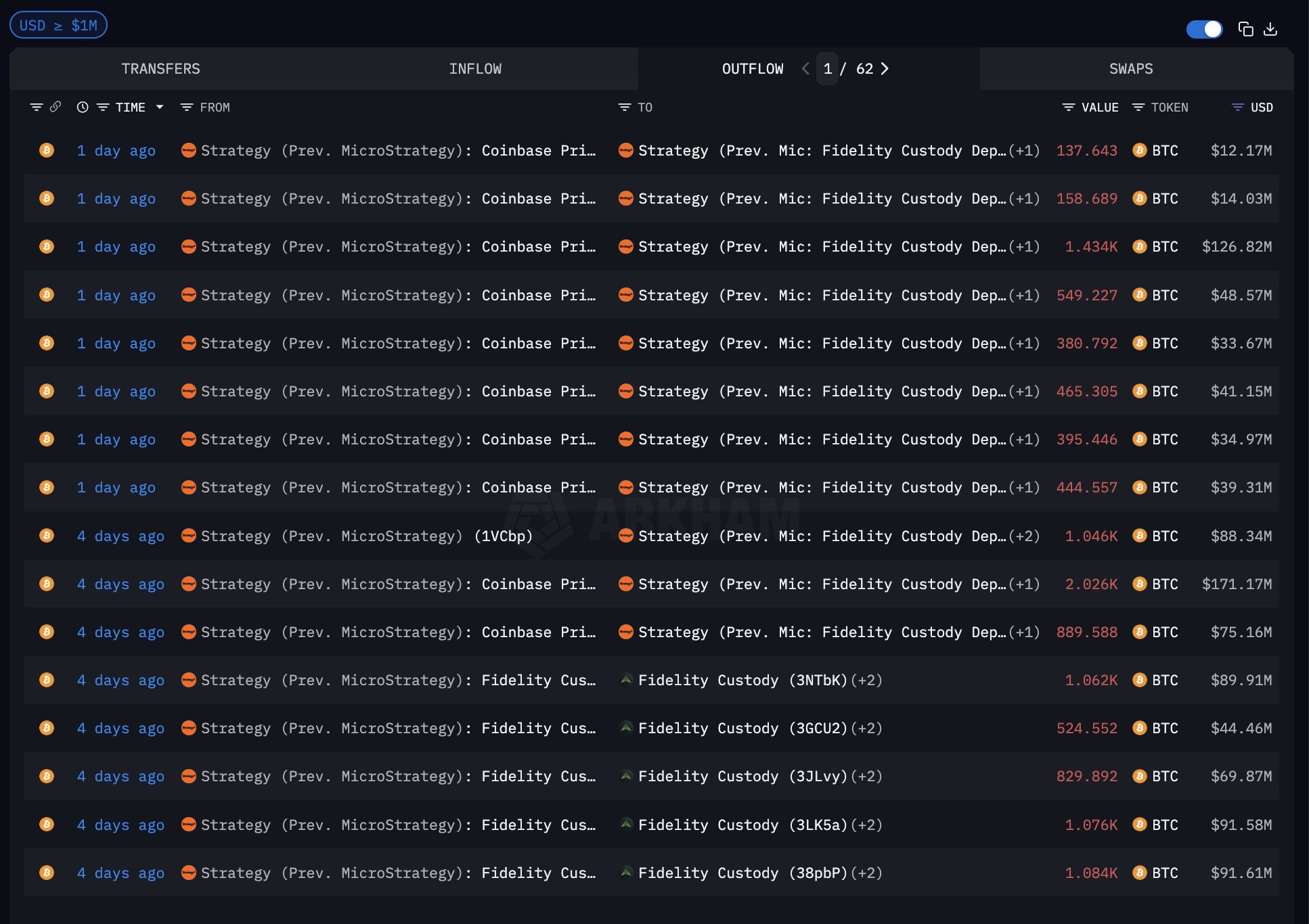 Este hecho tiene una repercusión directa en la visibilidad de los fondos en las herramientas de seguimiento en cadena. Según explica Arkham, al mezclarse los activos, una porción superior de los BTC de Strategy es ahora reflejada bajo la entidad de Fidelity Custody en la plataforma de rastreo de Arkham, en lugar de ser identificada directamente bajo la entidad de Strategy.