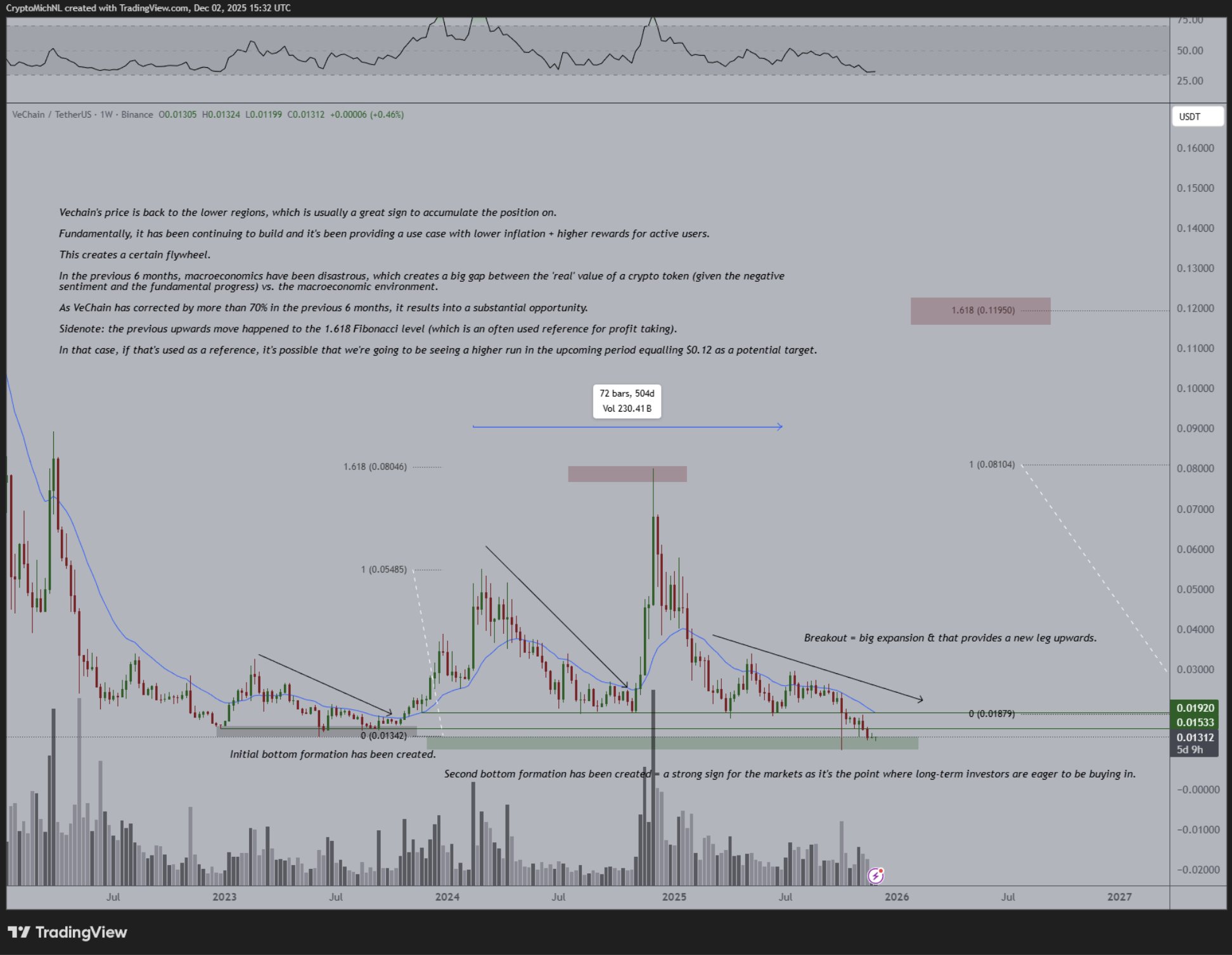 También se está centrando la atención en VET Coin con la próxima iniciativa Hayabusa para VeChain, un evento que se anticipa como uno de los más significativos del año para la moneda. A partir del 9 de diciembre, utilizando StarGate 2.0, los poseedores podrán hacer staking de tokens en cualquier grupo de validadores, ayudando a restringir la oferta disponible para la venta.
