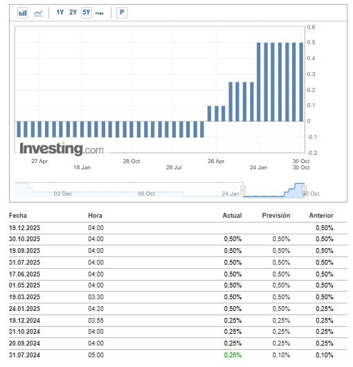 Lo primero que hay que señalar es que la última vez que el Banco de Japón (BoJ) subió las tasas de interés fue en enero de 2025, cuando las llevó de 0,25% a 0,50%, un nivel no visto desde hacía 17 años. Desde entonces, la tasa quedó fijada en 0,50 puntos.”