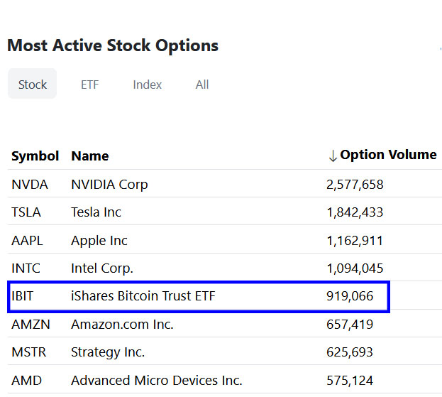 “Las opciones relacionadas con el ETF de Bitcoin de BlackRock se clasifican como las quintas más activas entre todas las opciones en términos de volumen. Ya superando algunas de las opciones más populares del mercado solo un año después de su lanzamiento, han superado notablemente a las opciones sobre ETFs de oro.” – Nic