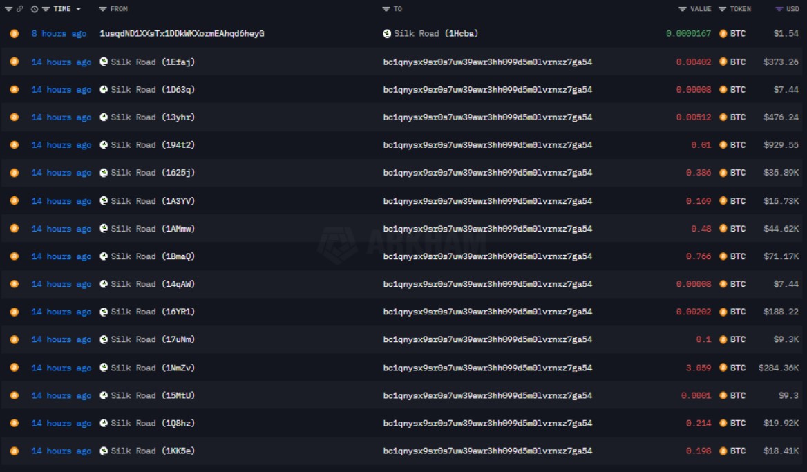 De acuerdo con datos en cadena, 312 monederos asociados a Silk Road transfirieron alrededor de USD 3,14 millones en bitcoin. Pese al movimiento, Silk Road aún conserva más de USD 41 millones en BTC, equivalentes a 415.773 monedas. Esto subraya la magnitud del patrimonio dormido relacionado con el antiguo mercado.