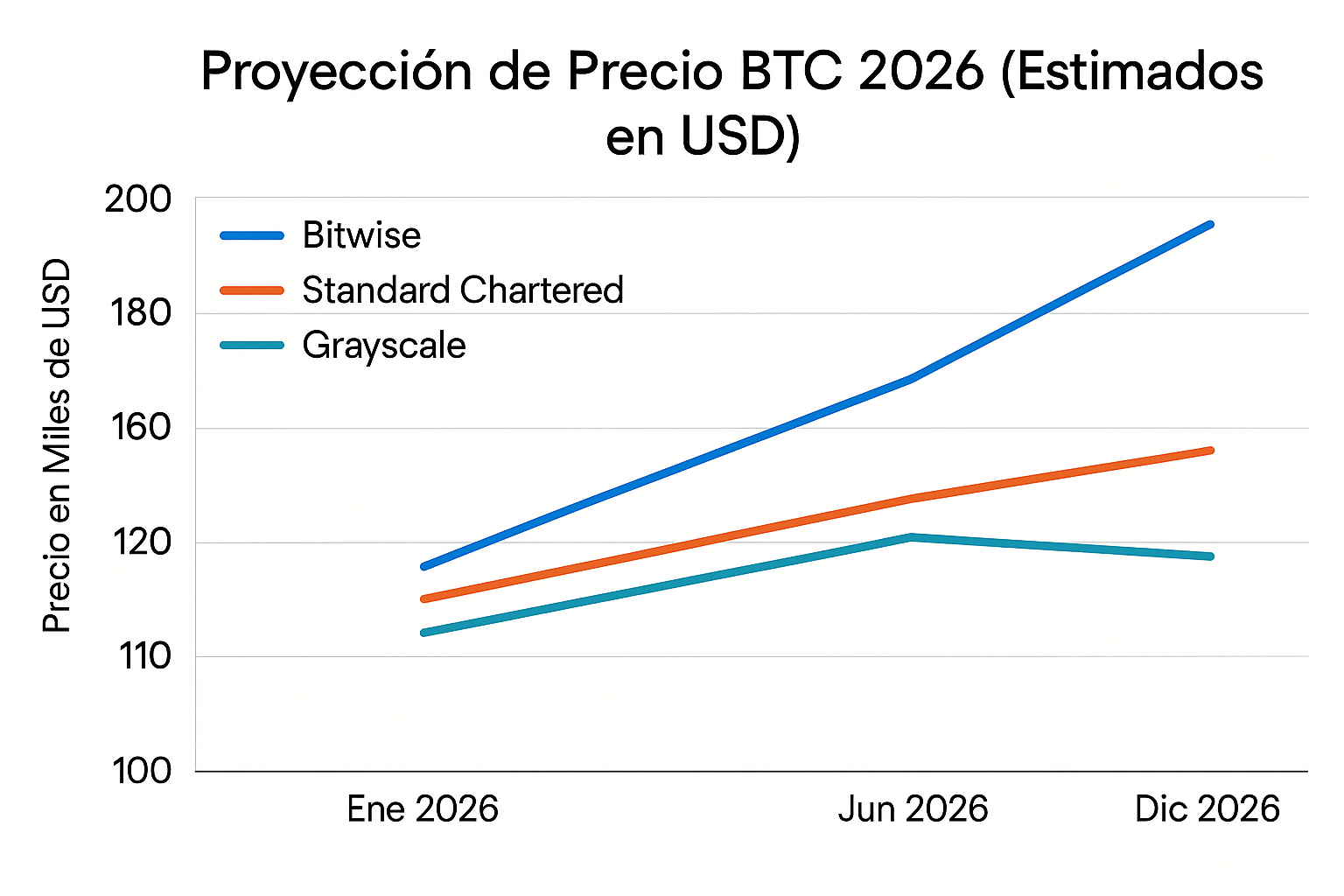 - Pronósticos: Standard Chartered $150K (bajado de $300K); Bitwise $200K superando pico 2025; Grayscale predice era institucional.