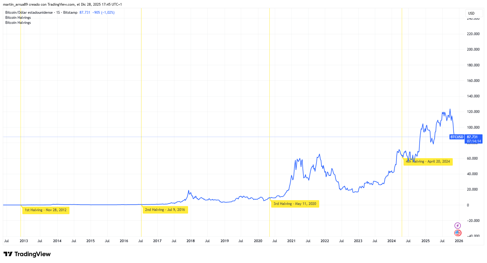 Como ha reportado CriptoNoticias, el halving y los ciclos de cuatro años son catalizadores históricos de BTC.