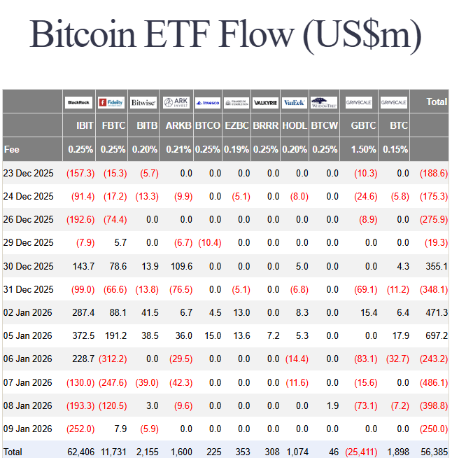 Por su parte, entre las carteras de Wall Street, en particular las relacionadas con los ETF spot de Bitcoin, también hubo movimientos interesantes de capitales. Como ya se menciona al principio, estos productos de bolsa no son ballenas de Bitcoin en el sentido estricto. Sin embargo, presentan una dinámica similar.