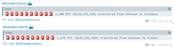 El miércoles fue una de las jornadas más singulares en términos de presión de venta a partir de las ballenas. Ese día, numerosas transferencias de 1.000 BTC o más fluyeron hacia exchanges como Coinbase o Binance. Los días posteriores también hubo un importante flujo de monedas hacia estas plataformas, según datos de WhaleBot Alerts.
