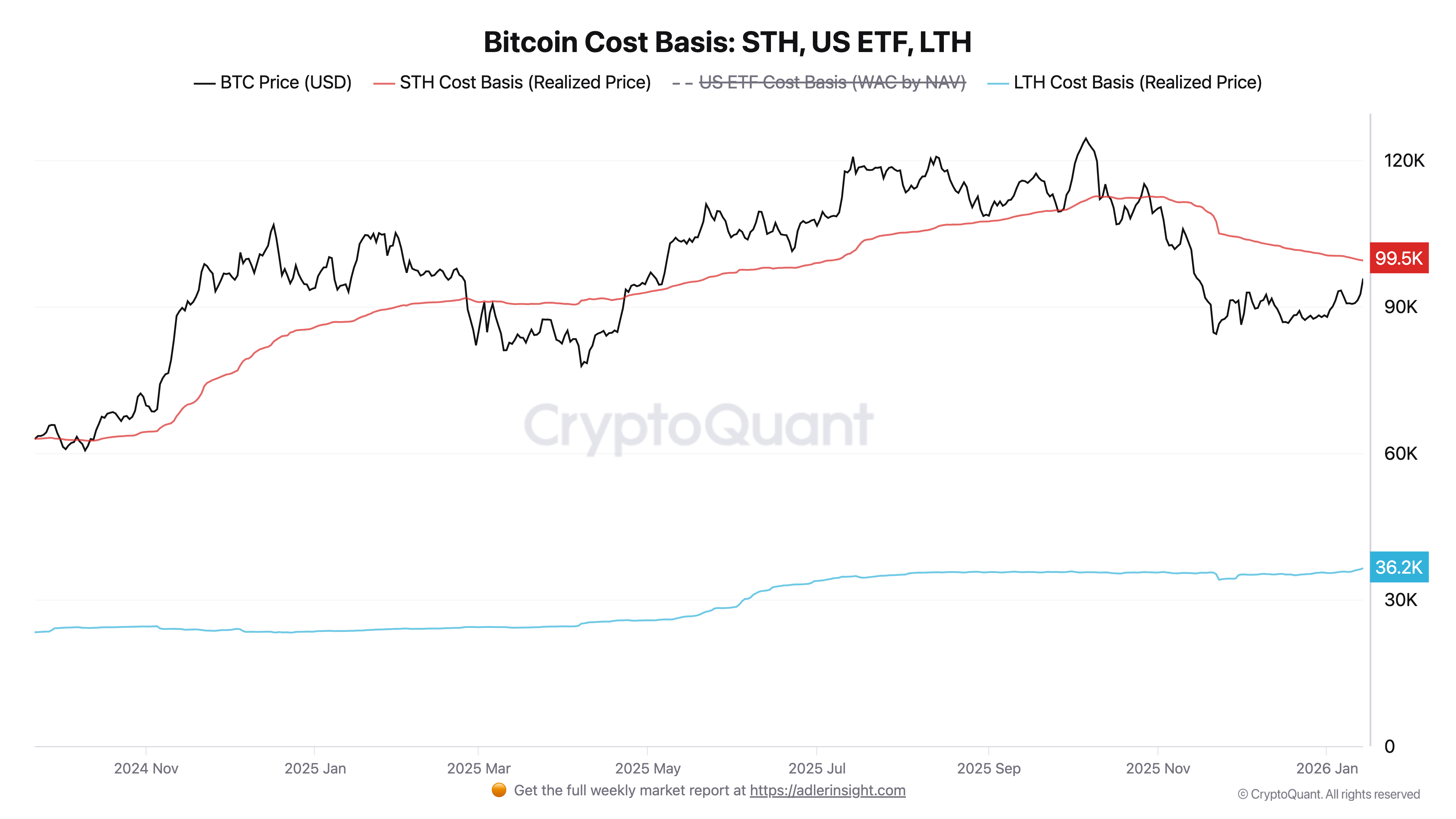 Datos independientes del colaborador de CryptoQuant, Axel Adler Jr., sitúan el coste agregado para el grupo de STH en USD 99.600, lo que refuerza esa zona como un posible punto de resistencia en el futuro.