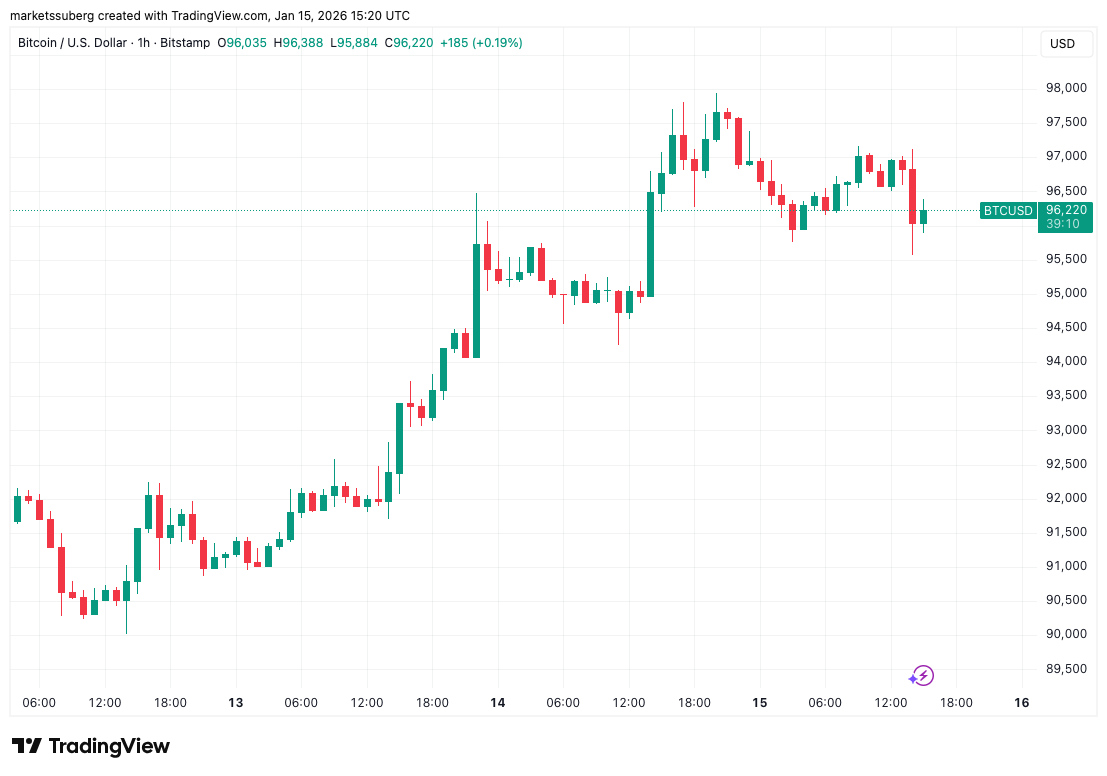 Los datos de TradingView mostraron que el precio de BTC cayó más de un 1% con respecto a la apertura diaria, alcanzando mínimos de USD 95.563 en Bitstamp.