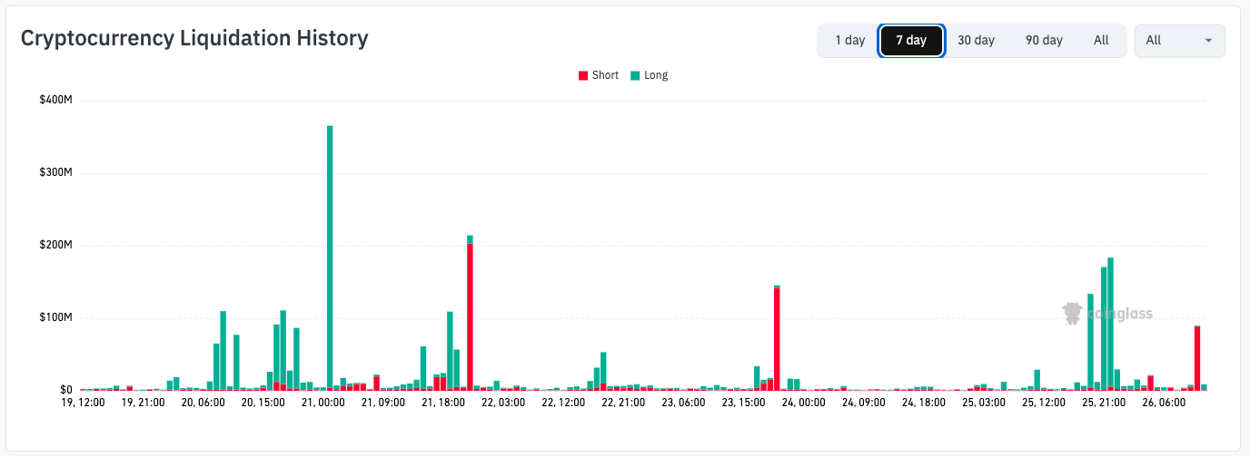 Los datos del recurso de monitorización CoinGlass confirmaron liquidaciones cruzadas de criptomonedas en 24 horas por un valor de casi 750 millones de dólares en el momento de redactar este artículo.