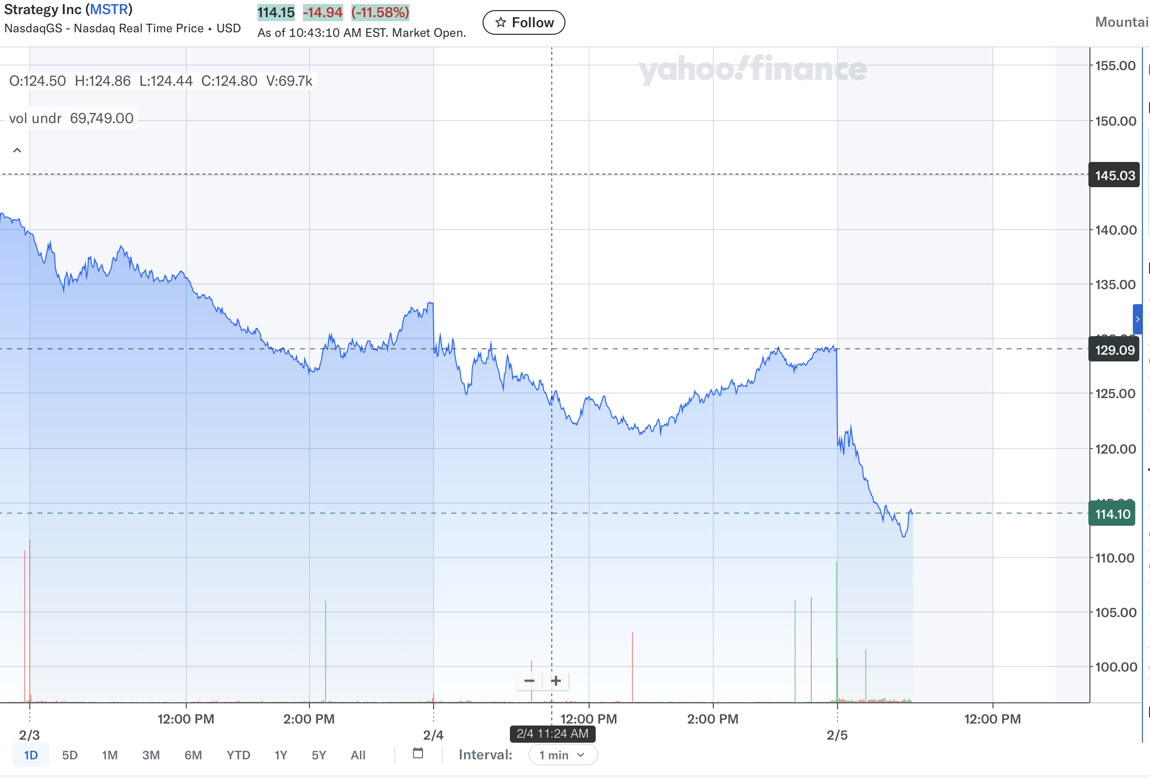 Strategy (MSTR), el mayor poseedor corporativo de Bitcoin ($BTC), está en el punto de mira antes de su llamada de ganancias el jueves en medio de una intensificación de la venta masiva en el mercado de criptomonedas. También se ve afectada por los vientos en contra la acción de MSTR, que se cotiza a 114$ en el momento de escribir, con una caída de más del 12% intradía.