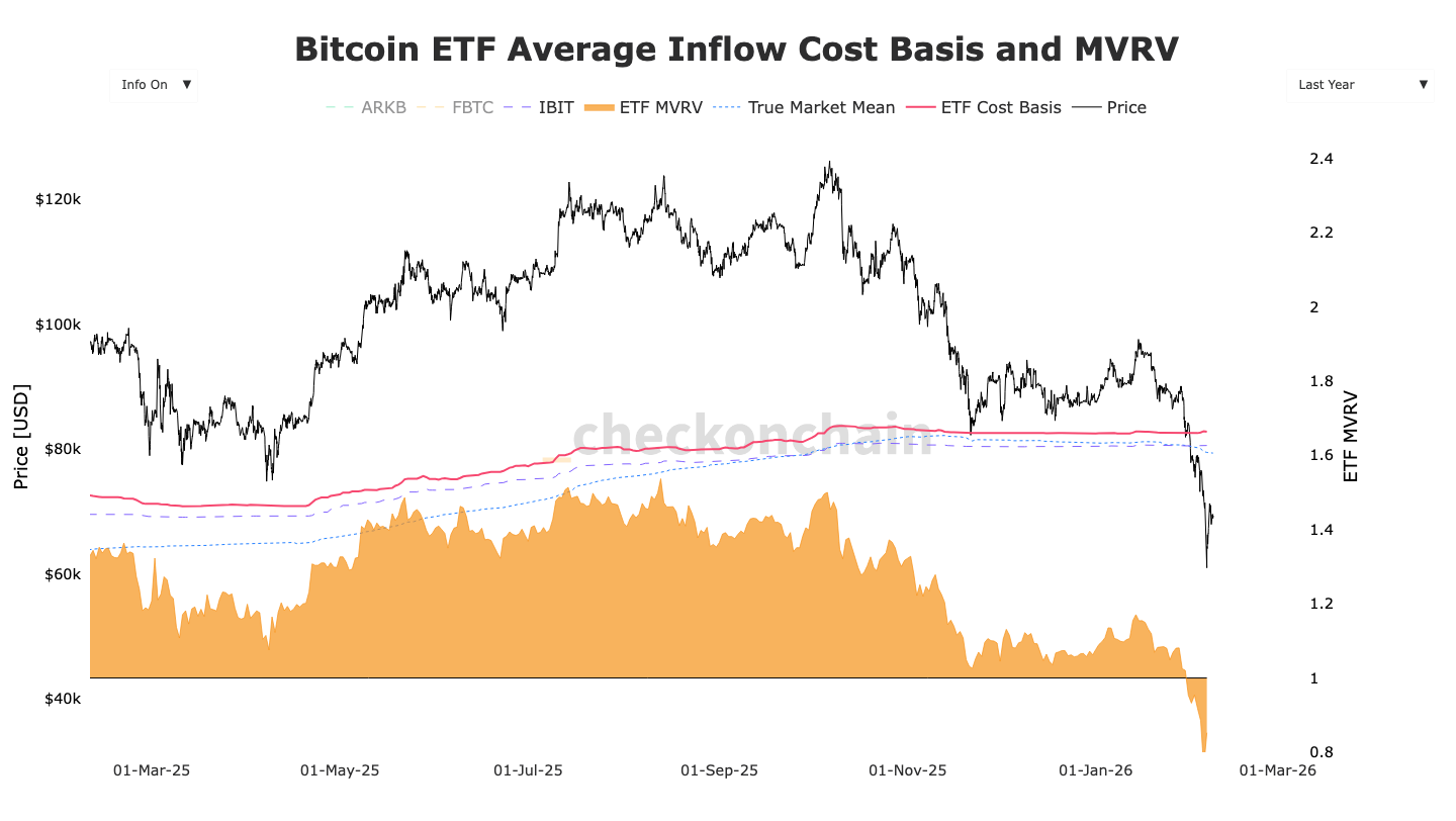 Los fondos cotizados en bolsa (ETF) de Bitcoin al contado en EE. UU. tienen actualmente un costo medio de compra de 82.000 dólares, según los datos del recurso de monitoreo Checkonchain.