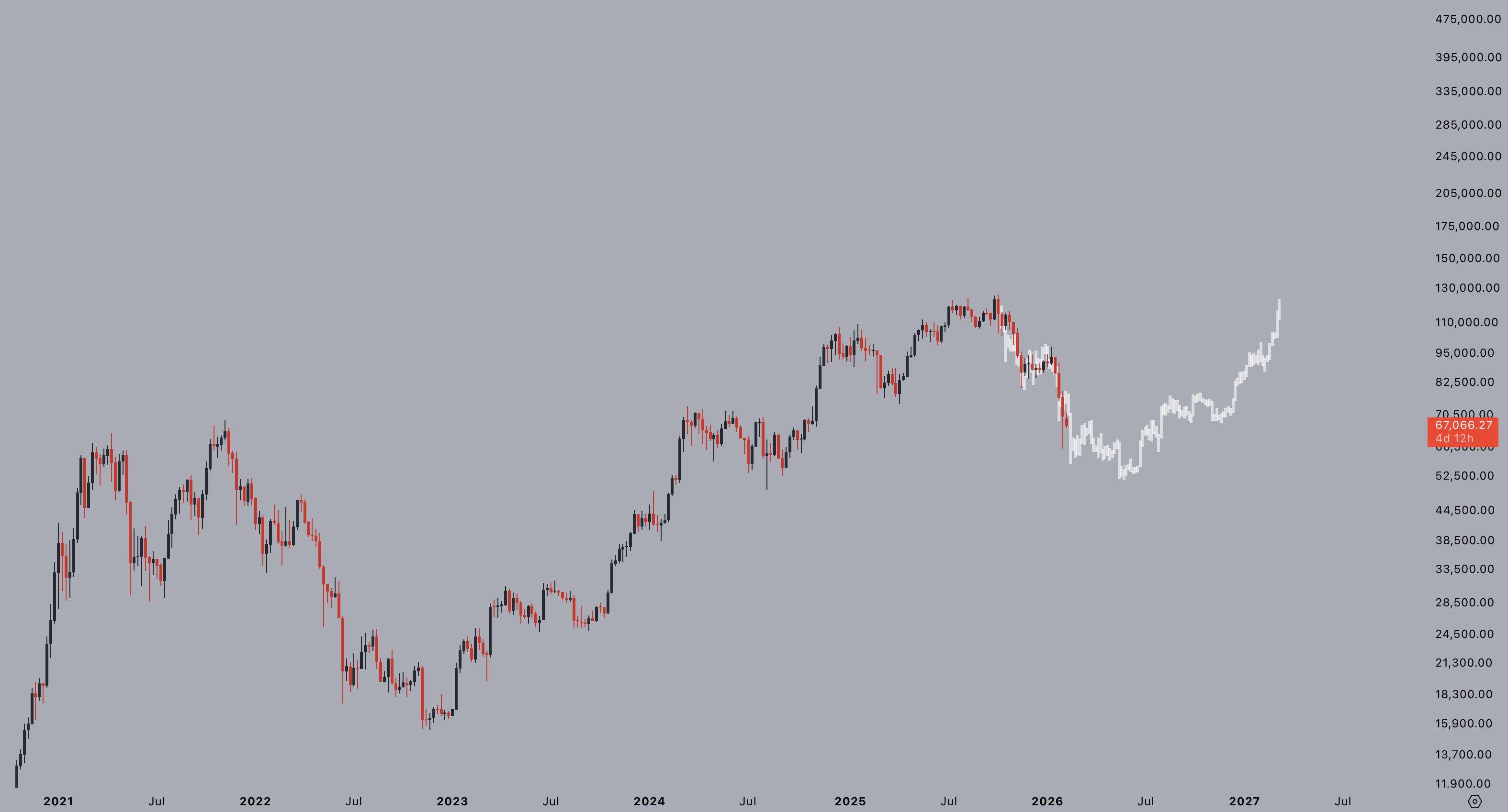 "Veríamos una caída relativamente lenta hacia USD 50.000 desde aquí, antes de repuntar; si sigue desarrollándose de la misma manera", dijo a sus seguidores de X.