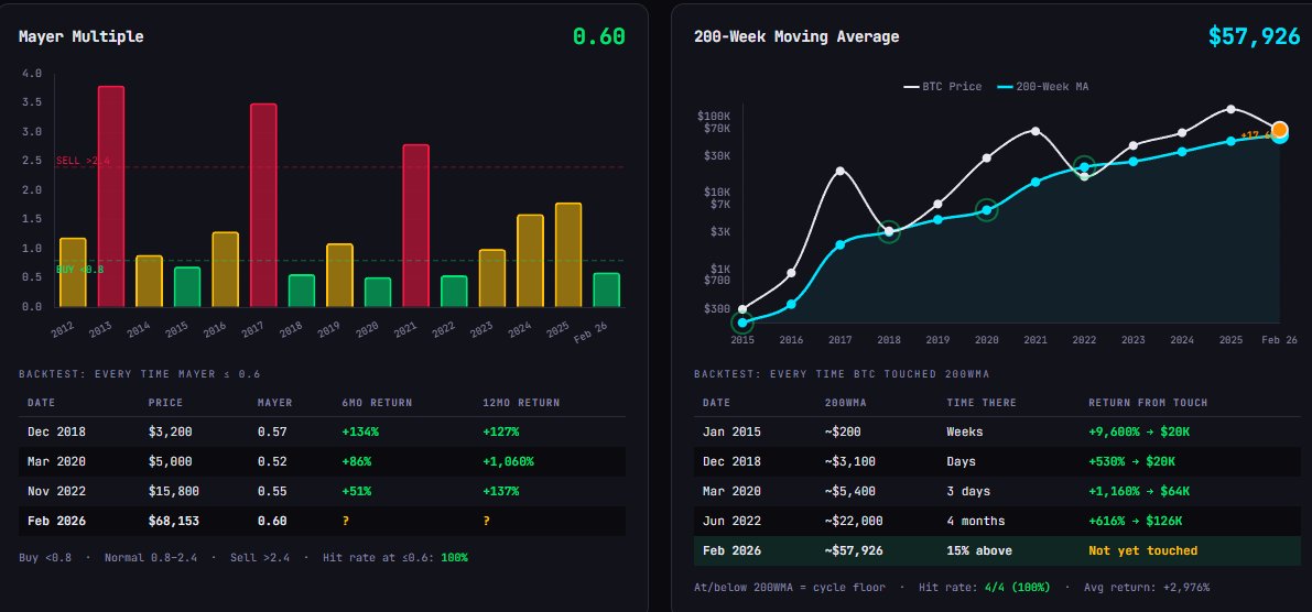 Los valores múltiples de Mayer siguen mostrando que el $BTC se encuentra en un territorio de "sobreventa" profunda.
