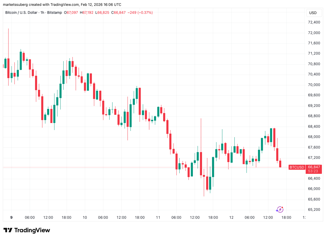 Los datos de TradingView mostraron que la acción del precio del $BTC se centró en la zona alrededor de USD 67.000 por segundo día consecutivo.