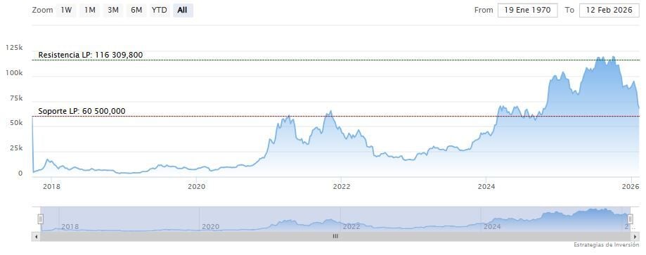 El soporte a mediano plazo y largo plazo se encuentra en los 60.500 dólares. Mientras, los indicadores de Ei se muestran mixtos.