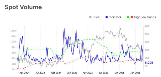 Sin embargo, en la segunda pierna, la reciente caída a 60.000$ el 6 de febrero vio una acumulación más débil que la fuerte y agresiva compra en la caída que siguió a la caída de $LUNA. Esto indica que el interés de compra actual carece de la urgencia e intensidad vistas durante eventos de capitulación importantes en el pasado, lo que podría reforzar la actual estructura de mercado defensiva y lateral.