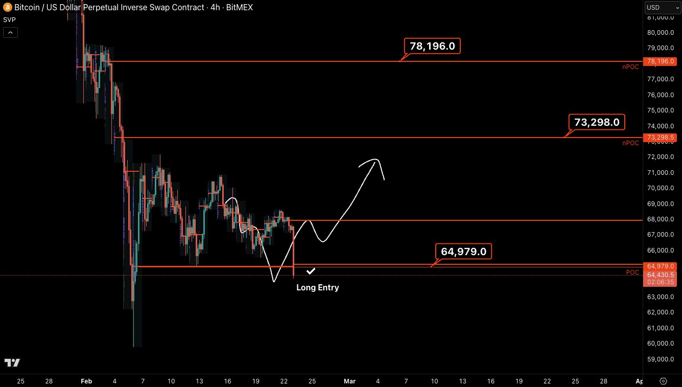 El nPOC, situado en 64.979 dólares, constituía uno de los varios puntos clave del precio, con un gráfico adjunto que apuntaba a un repunte de hasta 78.200 dólares.