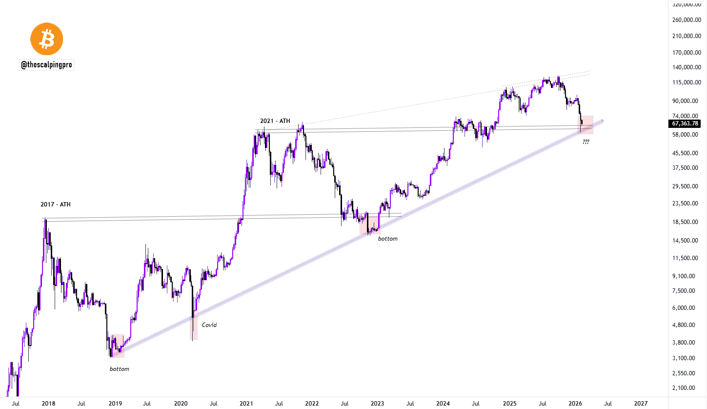 "Bitcoin está poniendo a prueba dos zonas de soporte importantes al mismo tiempo", dijo el analista Mags en una publicación reciente en X.