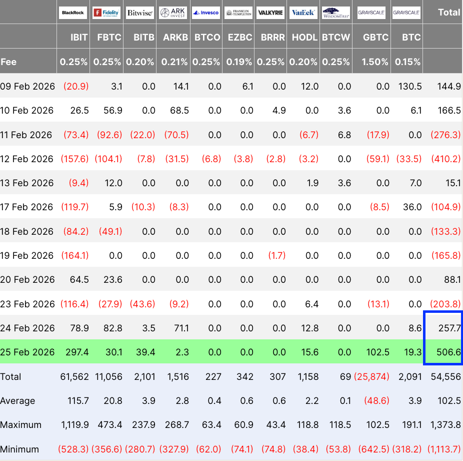 Las entradas en los ETF de Bitcoin al contado atrajeron 500 millones de dólares el miércoles.