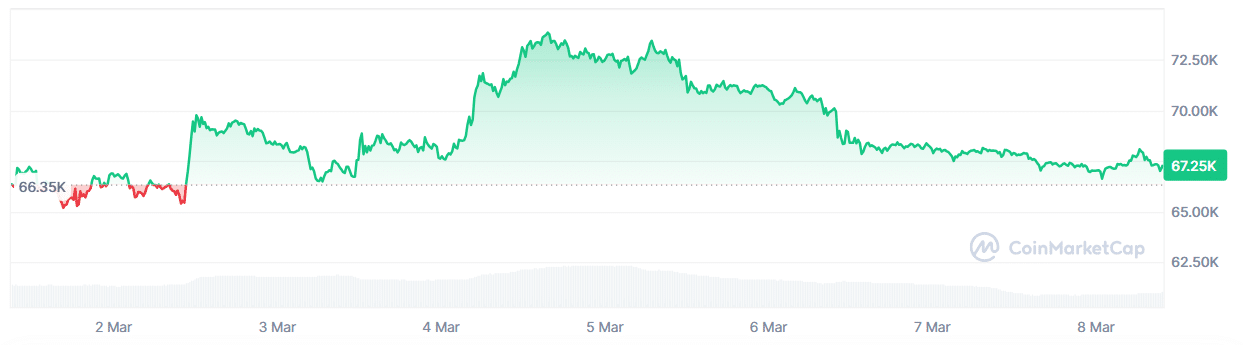 De acuerdo con datos del portal Trading Different, durante las primeras tres jornadas de cotización bursátil los flujos de entradas hacia estos productos fueron sobresalientes. Estos tres días hubo un flujo de entrada combinado de $1.145.3 millones. Este nivel de entradas fue decisivo para que el precio de $BTC subiera con fuerza hasta los $74.000 por token.