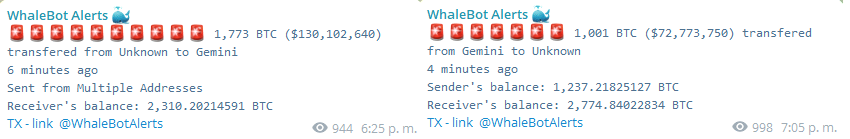 Entre el jueves y viernes comenzó la reversión de la tendencia alcista. Durante esas jornadas, algunas transacciones individuales pesadas de 1.000 $BTC o más se movieron hacia los principales exchanges. Los datos de WhaleBot Alerts y ClankApp revelan mayores detalles de estos movimientos on-chain.