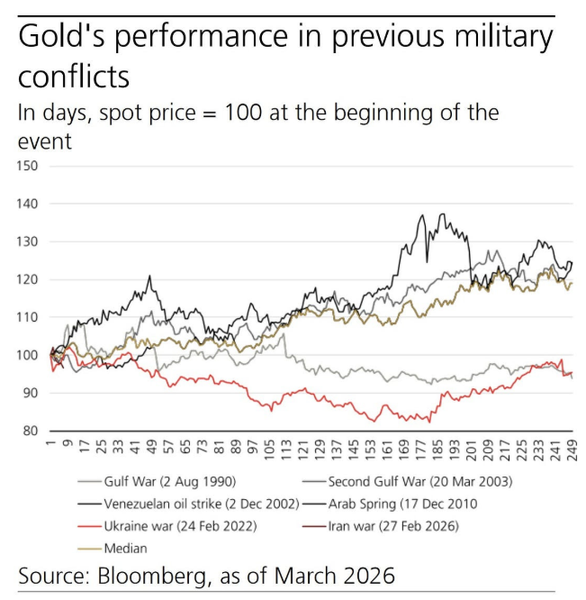 “El oro ofrece menos protección frente al conflicto en sí, sino más bien frente a sus efectos monetarios y financieros, como presiones inflacionarias, devaluación de divisas o desajustes fiscales”, añadió.