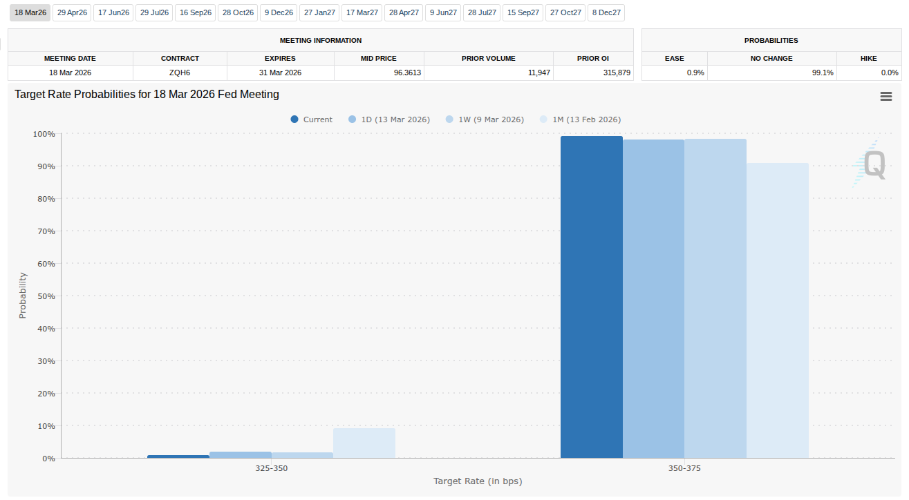 En el contexto de la guerra entre EE. UU./Israel e Irán, las preocupaciones por la inflación en EE. UU. han regresado debido al repunte de los precios del petróleo (con el Brent superando los USD 100,00), mientras la Reserva Federal se enfrenta a su próxima decisión sobre las tasas de interés este 18 de marzo.