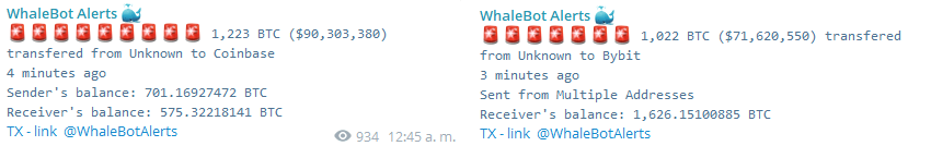 Durante la jornada del sábado y en lo que va del domingo, las transacciones de 1.000 $BTC o más han sido escasas. En términos generales, estas operaciones se han realizado entre carteras desconocidas o de acumulación, sin participación de los CEX.