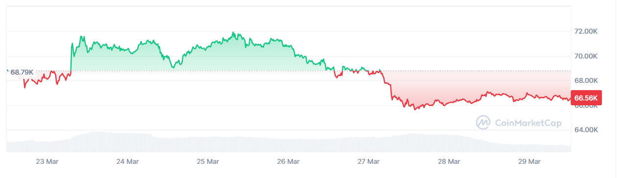 Mientras el $BTC se mantuvo por encima de los $70.000, los inversores minoristas mostraron optimismo y aumentaron sus compras. Sin embargo, el deterioro de las condiciones de mercado, especialmente hacia el final de la semana, impulsó una nueva ola de ventas que llevó el precio hasta un mínimo local cercano a los $66.500.