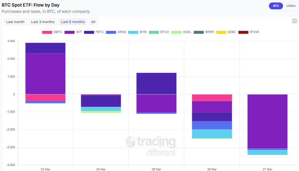 En línea con la tendencia general, los reembolsos comenzaron a dominar a partir del jueves y viernes. Según datos de Trading Different, solo en dos de las cinco jornadas se registraron entradas netas, y estas fueron relativamente modestas.