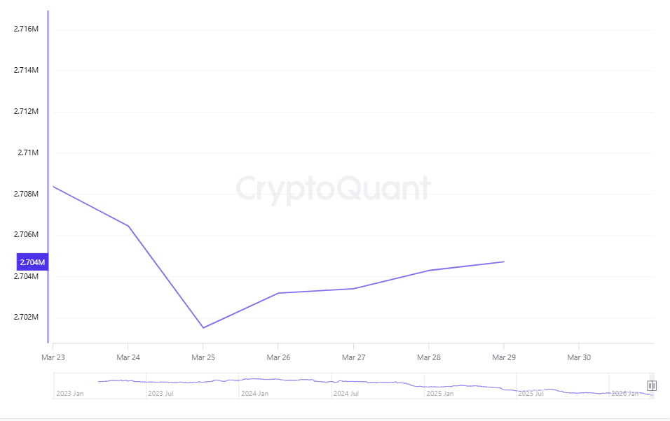 Por otro lado, en relación con la tendencia decreciente multianual de $BTC en los CEX, esta se mantuvo durante la semana. Aunque el movimiento fue prácticamente plano, la cantidad de $BTC en estas plataformas mostró una ligera reducción entre el lunes y el domingo, según datos de CryptoQuant.