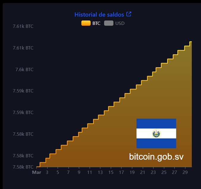 En general, el país centroamericano continúa ejecutando su plan de compra de 1 $BTC por día, una estrategia diseñada para promediar el costo de adquisición y reducir la dependencia de las fluctuaciones de corto plazo en el precio del activo digital. Así se ve en la siguiente gráfica: