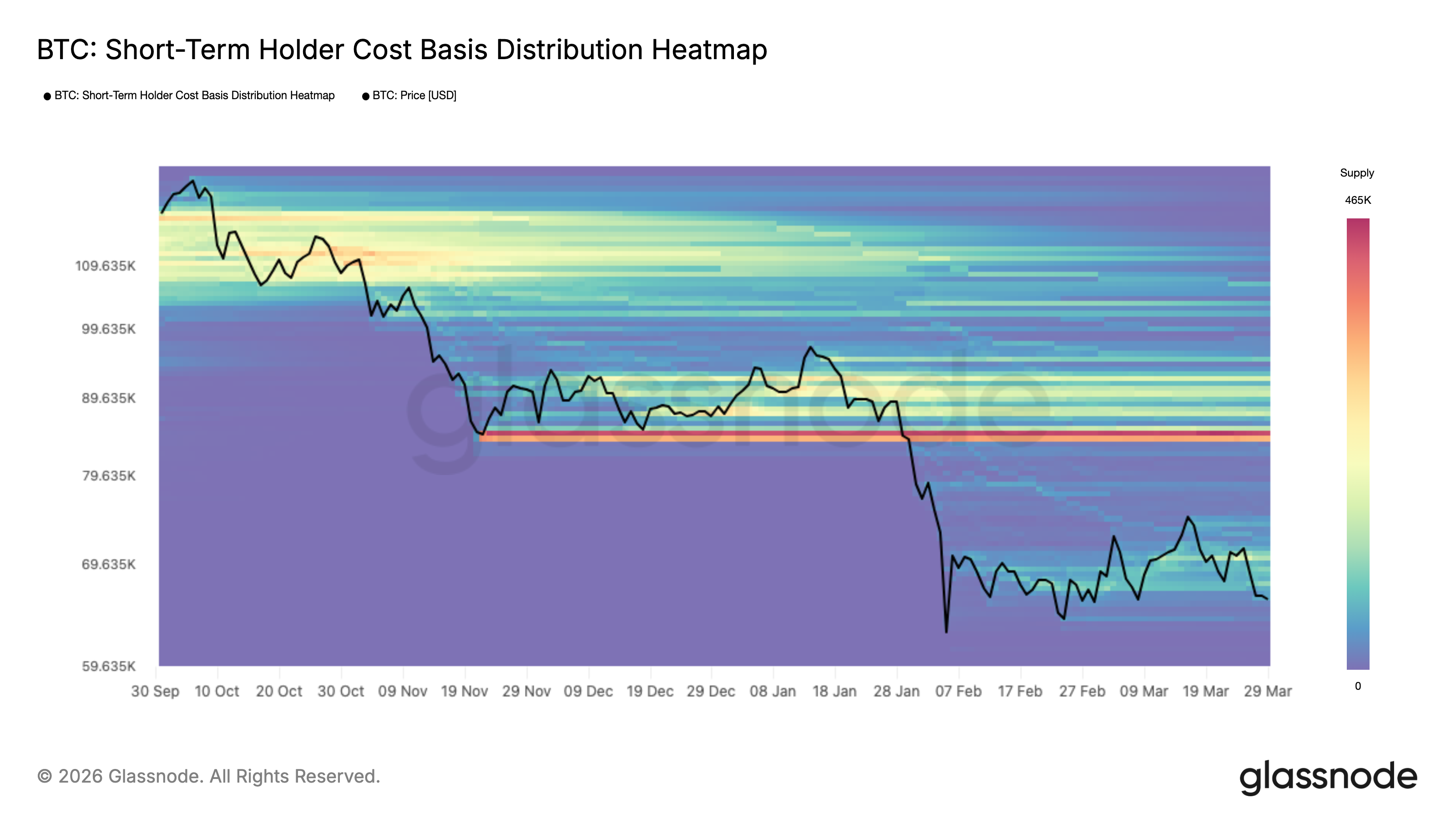 Entre USD 60.000 y USD 70.000, señala, los nuevos compradores de $BTC tienen su base de costo agregada.