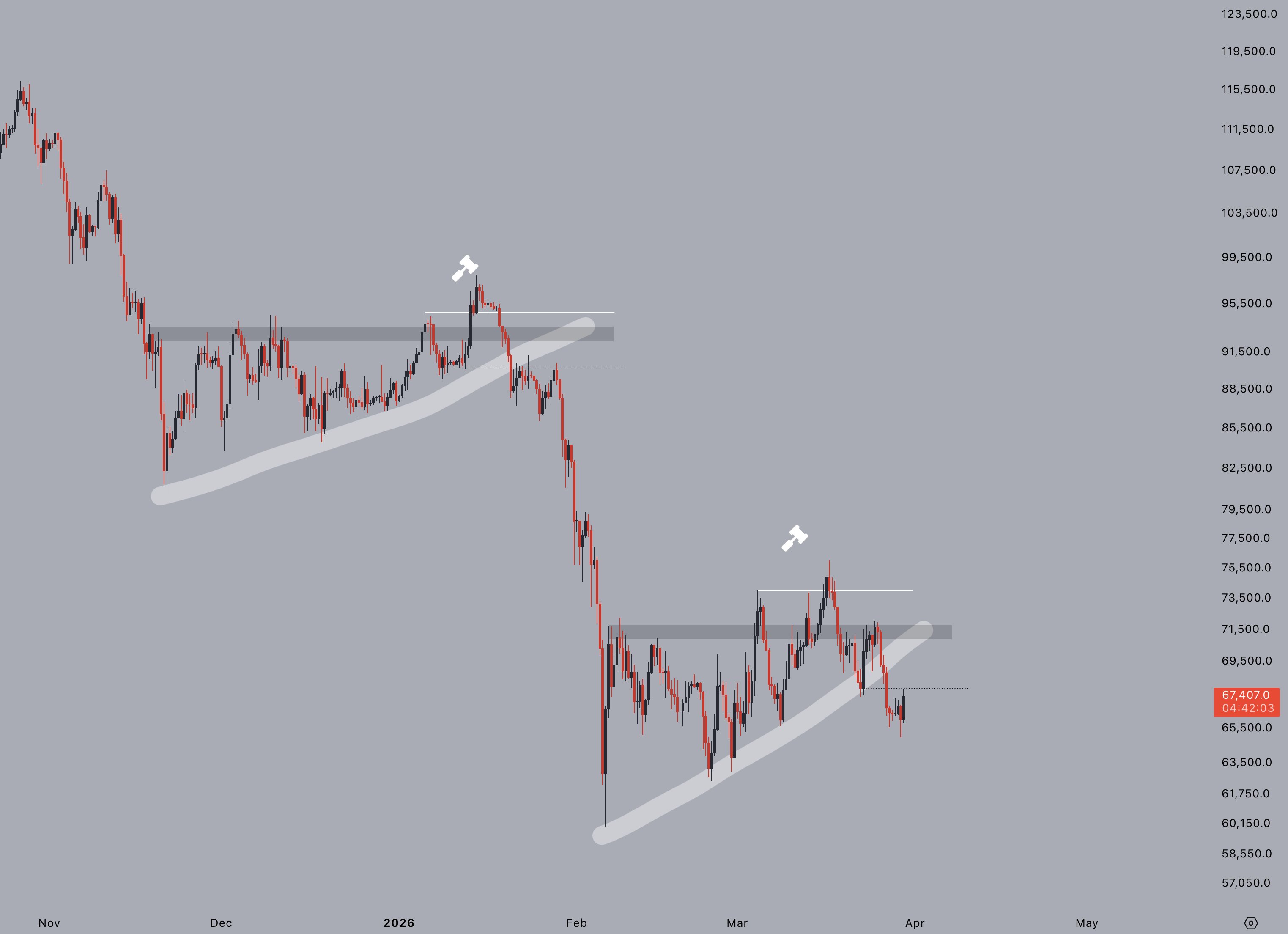 “Repitiendo exactamente la misma ruptura de bandera bajista que vimos en enero”, resumió el trader Roman.