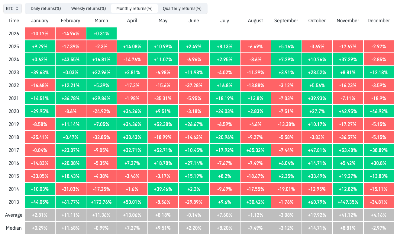 Marzo corre el riesgo de convertirse en el sexto mes de pérdidas para el precio de $BTC
