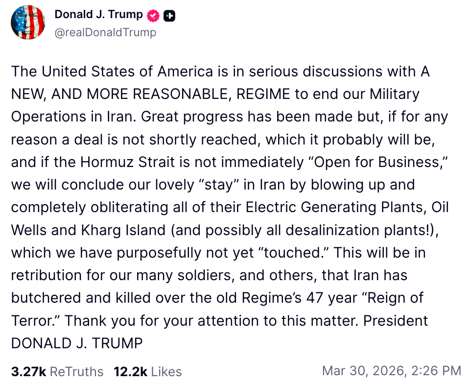 En una publicación en Truth Social, Trump exigió que Ormuz se reabra “inmediatamente ‘para los negocios’”, al tiempo que amenazó con renovar los ataques contra la infraestructura energética iraní.