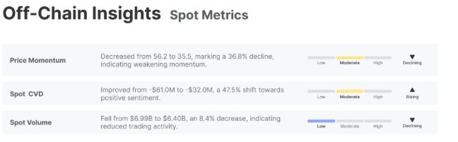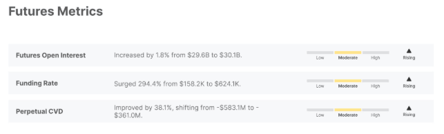 El informe explica además que los mercados al contado reflejan este tono de enfriamiento, con un volumen de negociación en descenso y una actividad que permanece moderada. En el lado de los derivados, el posicionamiento apunta a un trasfondo más equilibrado pero cauteloso. El interés abierto (OI) en futuros aumentó ligeramente, mientras que las tasas de financiación se fortalecieron, indicando una inclinación hacia la exposición larga, como se muestra en el gráfico a continuación.