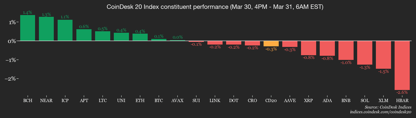 - CoinDesk 20 cae un 1.1% a 1,893.79 (24 horas: -2.15%)