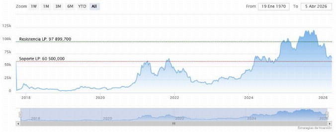 El soporte a mediano y largo plazo se encuentra en los 60.500 dólares. Mientras, los indicadores de Ei se muestran mixtos.
