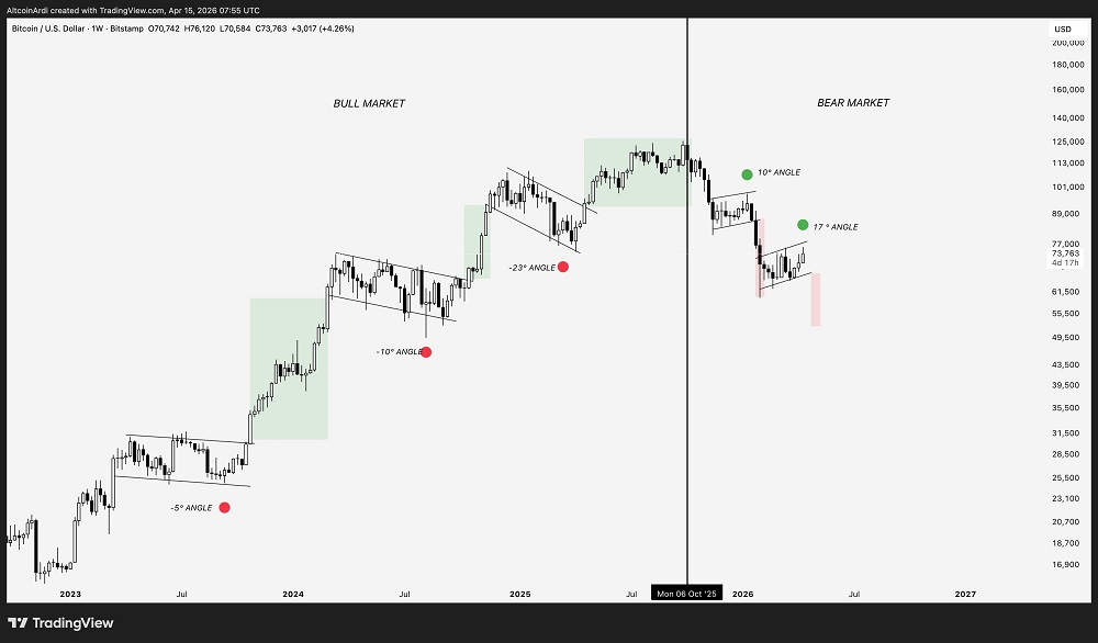 En la madrugada de este miércoles 15 de abril de 2026, el precio de bitcoin (BTC) llegó hasta los 76.000 dólares, nivel que no se veía desde el pasado 16 de marzo hace casi un mes.