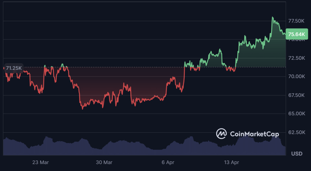 Bitcoin cotiza en torno a los 75.600 dólares, con una caída de aproximadamente el 2% en las últimas 24 horas. Ese es el dato que circula, el que genera titulares de corrección y el que alimenta la narrativa de debilidad.