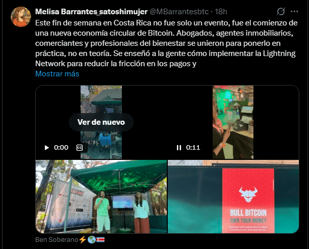 Su testimonio refleja lo que se vivió en las calles de Puntarenas, donde abogados, agentes inmobiliarios y comerciantes locales se integraron en un despliegue práctico para demostrar que la red Lightning es capaz dereducir la fricción en los pagos cotidianos, mientras que la IA se utiliza para optimizar la gestión de los negocios en tiempo real.