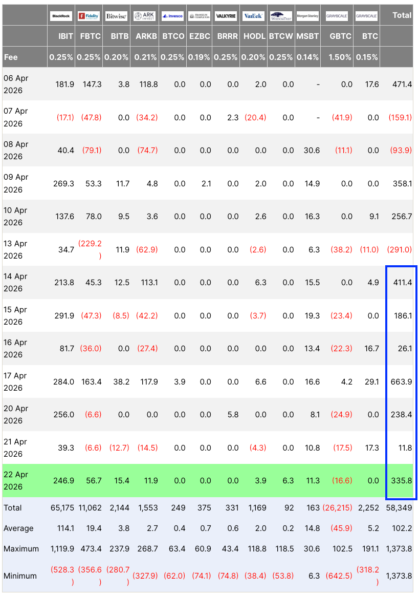 Mientras tanto, la demanda de fondos cotizados en bolsa (ETFs) de Bitcoin al contado sigue, con estos productos de inversión registrando siete días consecutivos de entradas, totalizando 1.900 millones de dólares.
