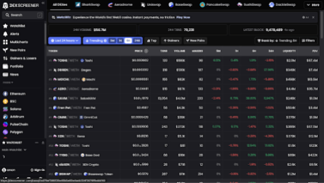 Después de adquirir su ETH base, debe investigar y saber qué token desea comprar en la red base en Coingecko antes de dirigirse a Dexscreener para verificar el token. Dexscreener sirve como una herramienta valiosa para verificar los tokens disponibles en EVM. cadena, incluida la Red Base.