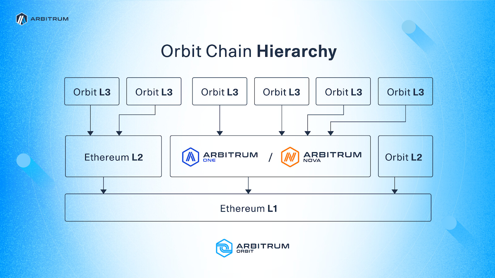 Arbitrum Orbit es una plataforma desarrollada por Offchain Labs, enfocada en el desarrollo de cadenas de bloques personalizadas e independientes usando la pila tecnología de Arbitrum, conocida como Nitro. Con Arbitrum Orbit, los desarrolladores pueden crear tanto redes de segunda capa o Capa 2, directamente construidas sobre Ethereum, como soluciones de escalado de Capa 3, que se pueden implementar sobre cualquier blockchain de Capa 2, como es el caso de Arbitrum One o Arbitrum Nova.