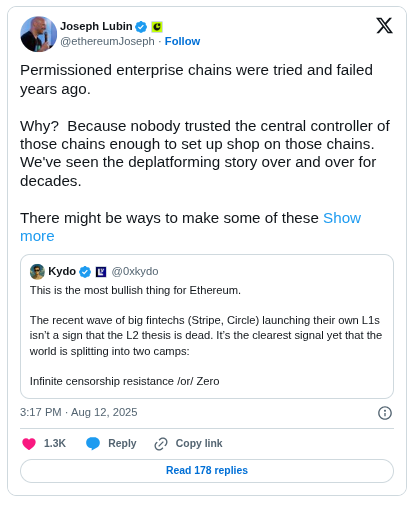 “Usuarios, emisores y desarrolladores se sentirán atraídos por tales cadenas debido a una percepción de seguridad. Incluso si estas redes crecen y se vuelven importantes, no pueden comenzar a abusar de los usuarios de la manera en que las cadenas corporativas pueden, y la infraestructura TradFi… históricamente lo ha hecho”, agregó Malekan.