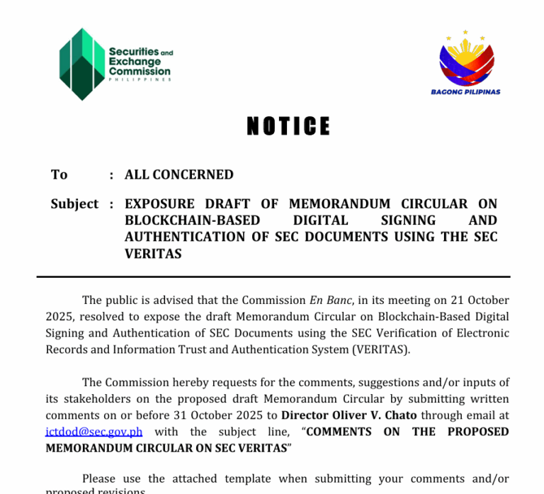 El borrador fue publicado para comentarios públicos hasta el 31 de octubre, y está diseñado para integrarse con los portales electrónicos existentes de la SEC filipina, como eSECURE y eSAP.