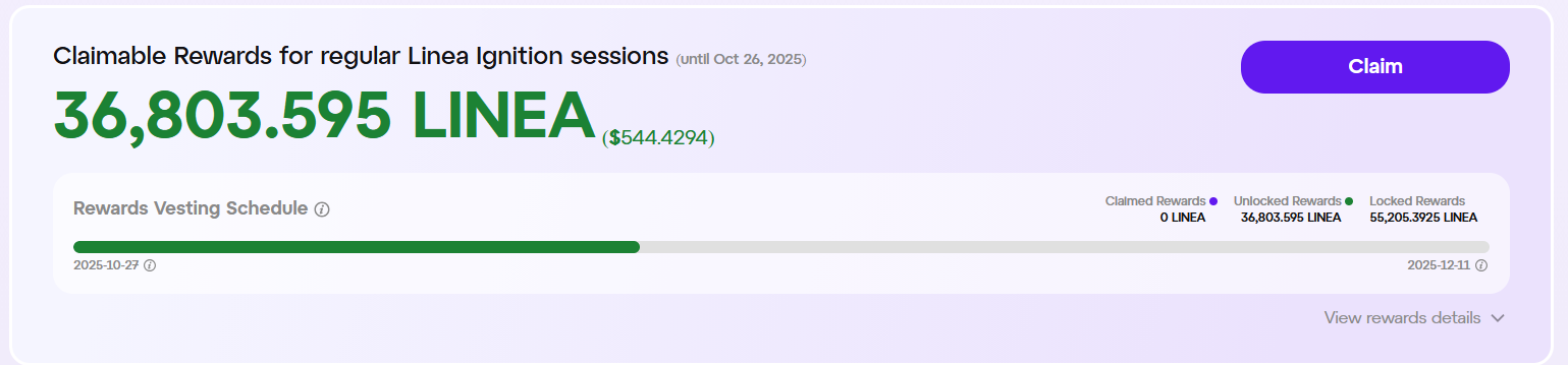 Si participaste en esta campaña de distribución de tokens de Linea, ya puedes reclamar los tokens Linea equivalentes al 40% de todos los activos ganados. El 60% restante se distribuirá antes del 11 de diciembre de 2025.