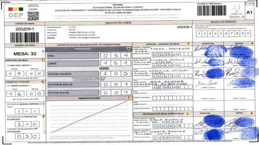 De acuerdo a Forbes, el proyecto, llamado TuVotoSeguro y desarrollado por la firma internacional Impera Strategy, fue diseñado para resolver un problema muy concreto: las denuncias de manipulación en la transmisión de resultados que marcaron la polémica elección de 2019. Esta vez, cada acta se almacenó digitalmente segundos después del conteo, bajo la mirada de testigos y observadores.