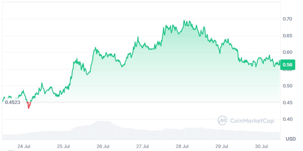 La integración entre ambos proyectos hizo que el precio de ENA, la criptomoneda de Ethena, aumentara un 20% en los últimos 7 días, pasando de USD 0,45 a los vigentes USD 0,55. Ello, considerando la notabilidad de Aave, protocolo que ya tiene más de 20.000 millones de dólares en préstamos activos, como reportó CriptoNoticias.