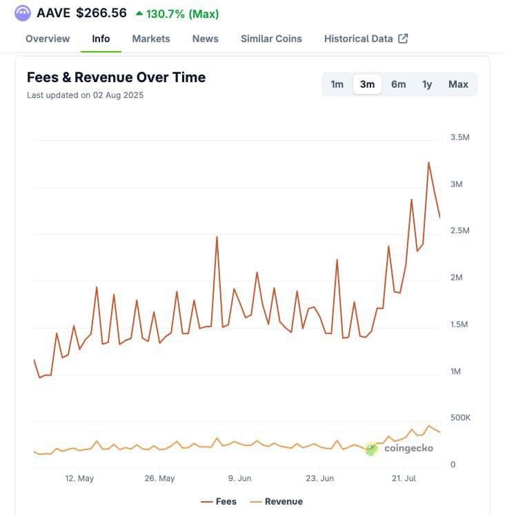 Mientras tanto, las tarifas diarias son el motor de ingresos de Aave.